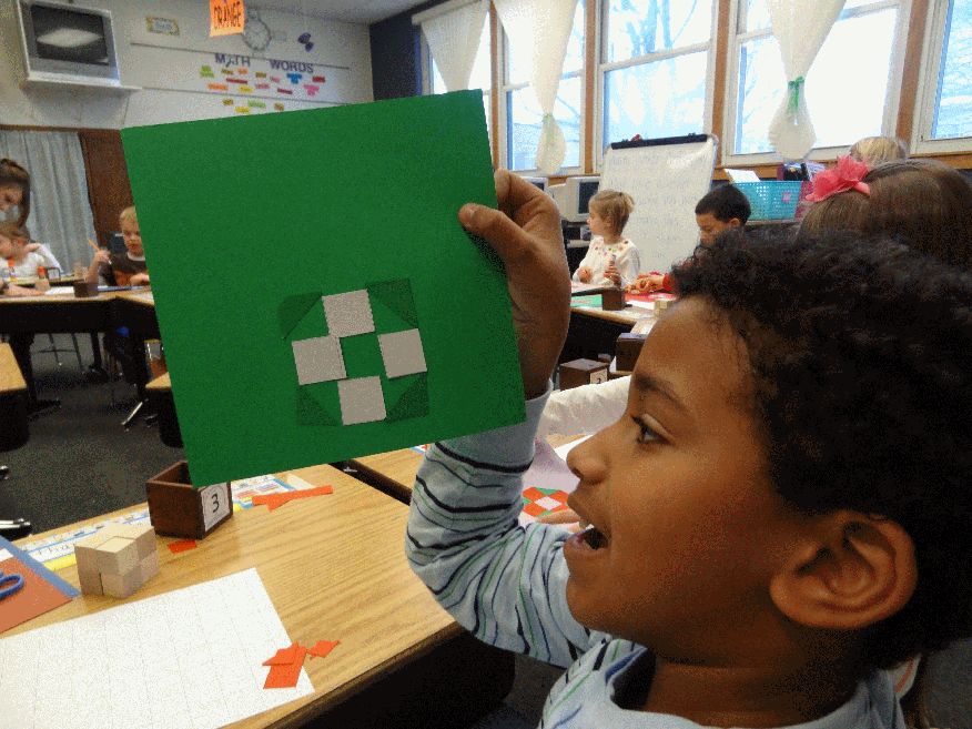 First grade children practice playing with Paper Slats and Parquet Tiles. Next Slide Copyright © 2013-2016 savefroebel.com Research and Development Center