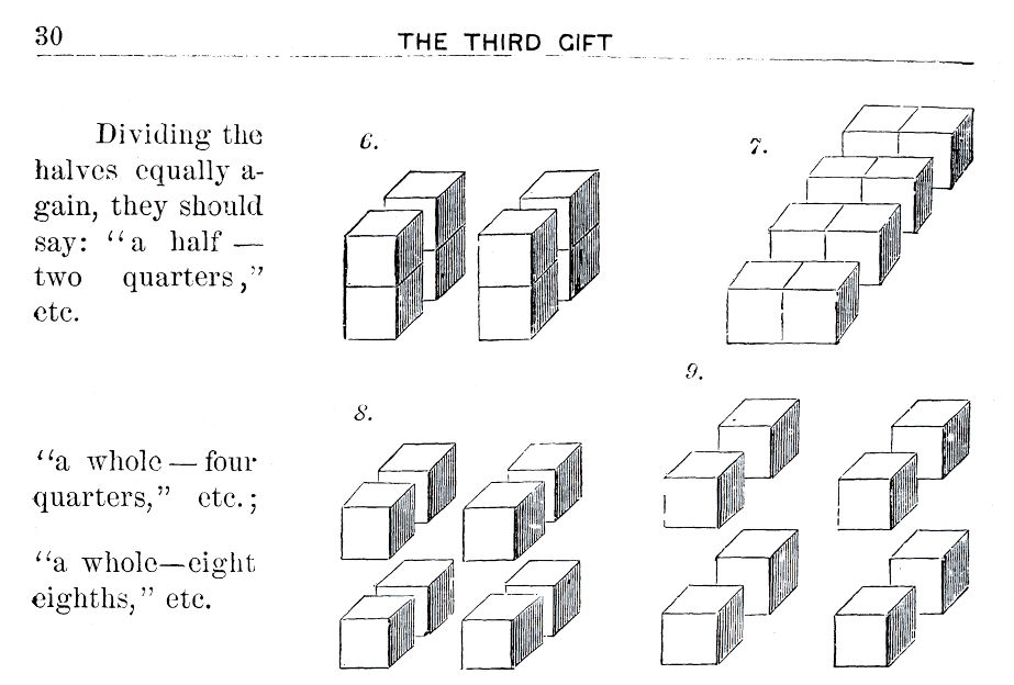 In the Third Gift, which parallels a child's curiosity to take things apart, the whole is precisely